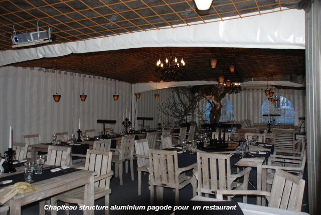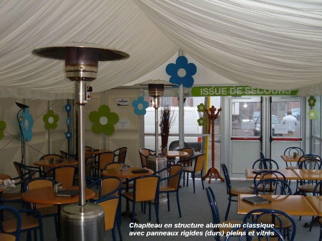 Nos chapiteaux peuvent être muni d'accessoires (plancher, éclairage, tapis de sol, vélum en toiture, vélum sur les côtés, ...) ainsi que du mobilier ...