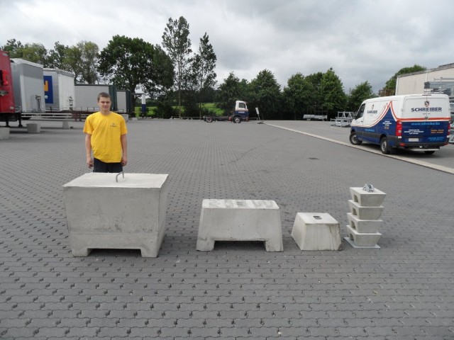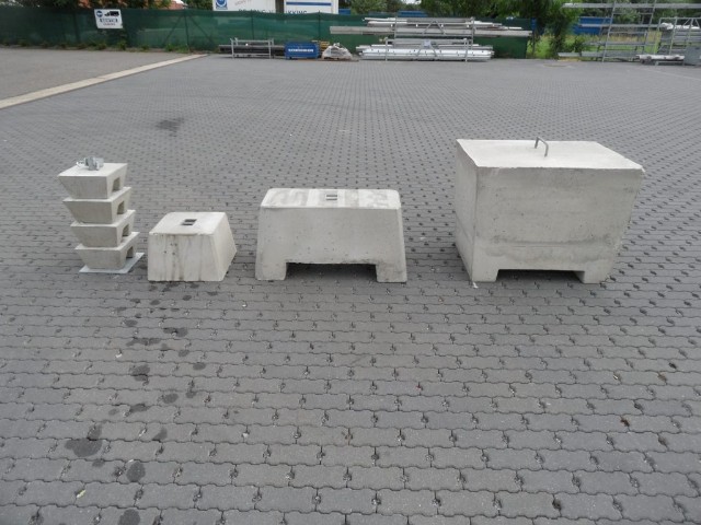 Nous lestons nos chapiteaux avec des blocs de béton, mais nous pouvons aussi vous les fournir pour tous vos évènements et pour tout type de produit (tente, arche, château gonflable,...). - ensemble de blocs de 125kg : 4 blocs de béton de 30kg chacun, reliés par un mât en acier (manipulation aisée à la main) - blocs en béton de 150kg - blocs en béton de 415kg avec passage de fourche, pour une manipulation aisée avec un engin de levage - blocs en béton de 1200kg avec passage de fourche, pour une manipulation aisée avec un engin de levage